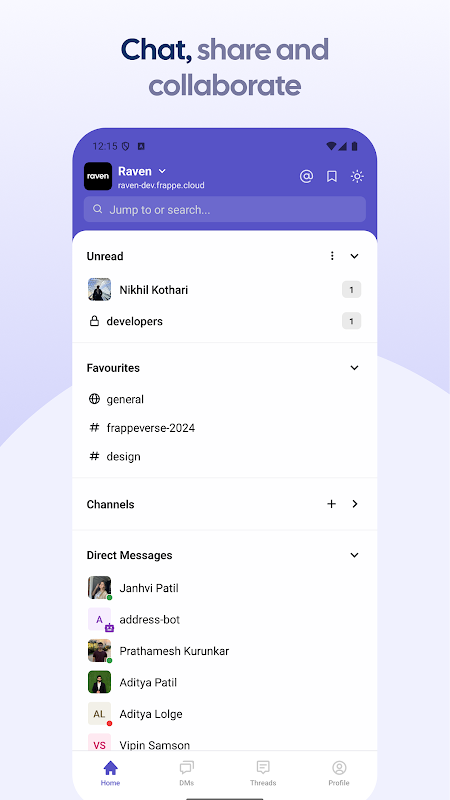 - افزایش همکاری: به اشتراک گذاری و ویرایش اسناد، تصاویر و فایل ها در Raven. با ایموجی ها به پیام ها واکنش نشان دهید و بحث های سازماندهی شده را با استفاده از موضوعات حفظ کنید.