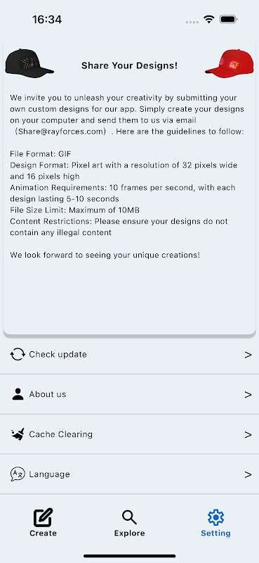 Rayforces.com می تواند چراغ های LED روی کلاه را از طریق برنامه تلفن همراه کنترل کند تا به عملکردهایی مانند الگوها، متن، گرافیتی، ریتم موسیقی، ریتم میکروفون و غیره دست یابد.