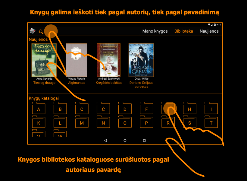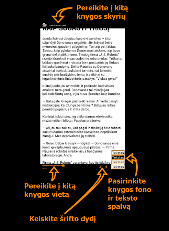 در میان تقریبا 1000 با کیفیت بالا لیتوانیایی و انگلیسی کتاب الکترونیکی را انتخاب کنید، خواندن آنها را به راحتی - افزایش یا کاهش اندازه فونت، بدون اتصال به اینترنت (آفلاین) را بخوانند، و خواندن آنها را به صورت رایگان.