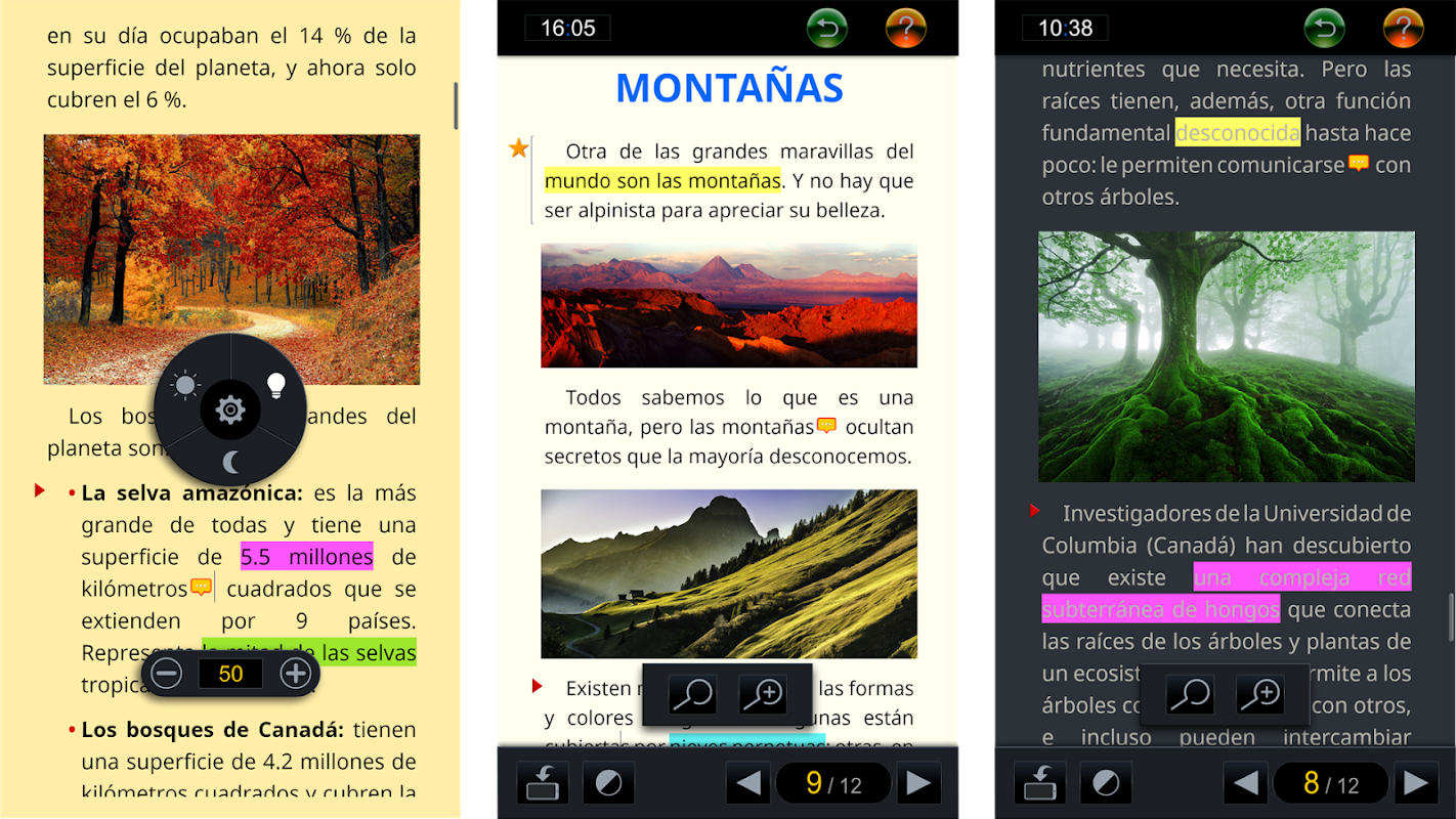 Readical شما ارائه می دهد 4 حالت های خواندن: کلاسیک، فعال، هدایت و لیزری.