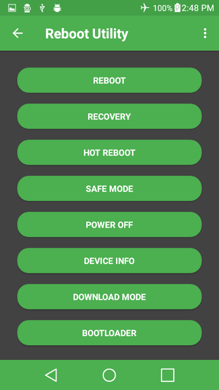 این یک برنامه کاربردی راه اندازی مجدد ساده برای مدیریت گزینه های راه اندازی مجدد خود در تلفن های "ریشه دار" است. همچنین دارای 9 موضوع و 4 زمینه برای انتخاب است.