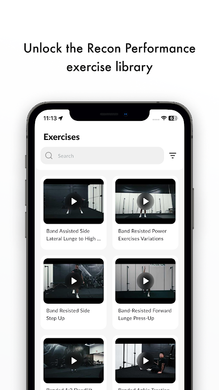 Recon Performance به ورزشکاران اجازه می دهد تا با استفاده از Recon Performance Equipment به تمام ویدیوهای تمرین دسترسی داشته باشند. از داخل برنامه، به راحتی لیست طولانی از تمرینات مختلف را بر اساس دسته بندی های ارائه شده توسط Recon فیلتر کنید.