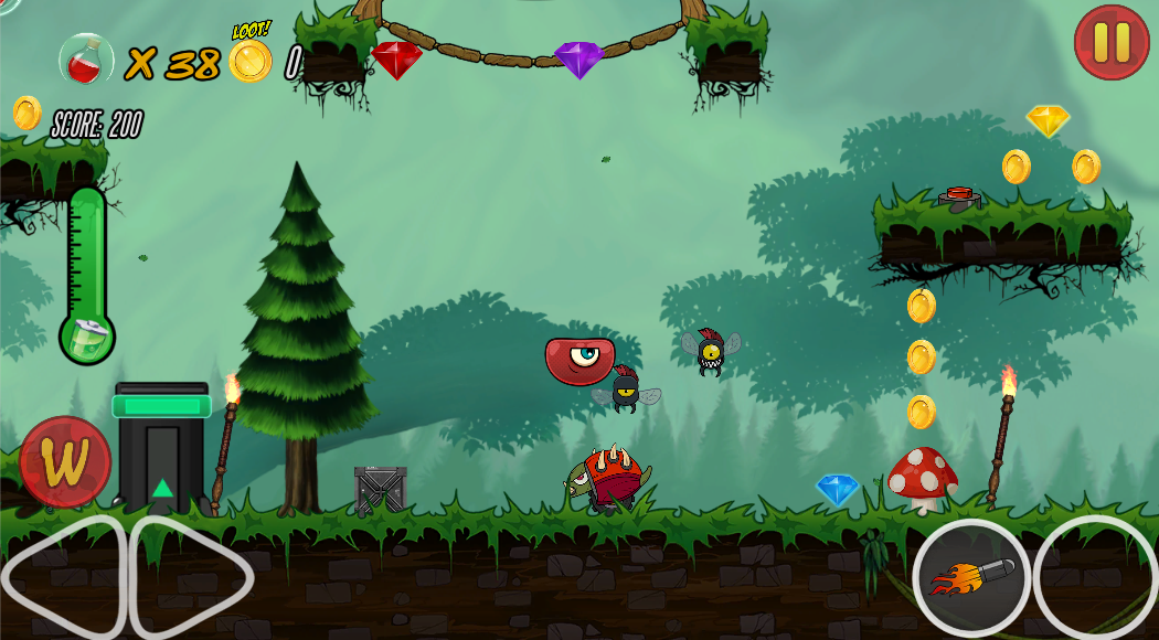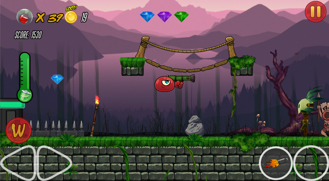 در دنیایی مملو از موجودات، توپ قرمز کوچک باید برای انجام ماموریت خود عجله کند: برای زنده ماندن، زندگی ها و اسلحه ها را جمع آوری کنید و تمام الماس ها را برای عبور از سطوح.