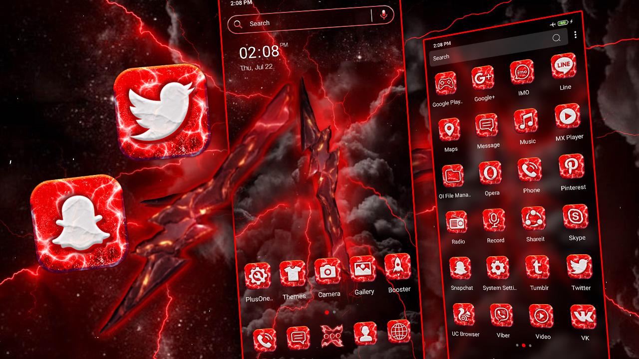 Red Thunderstorm Launcher Theme Launcher را بارگیری کرده و پرتابگر Thunder look داشته باشید