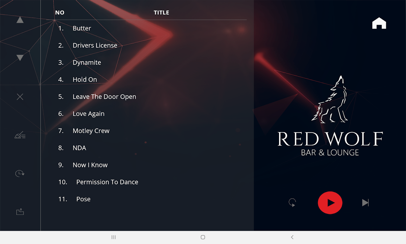 این برنامه به عنوان یک کنترل از راه دور برای انتخاب آهنگ، مکث، پخش، تغییر حجم صدا و مدیریت لیست پخش از یک تبلت اندرویدی 10 اینچی عمل می کند. این برنامه برای محل کارائوکه Red Wolf ایجاد شده است.