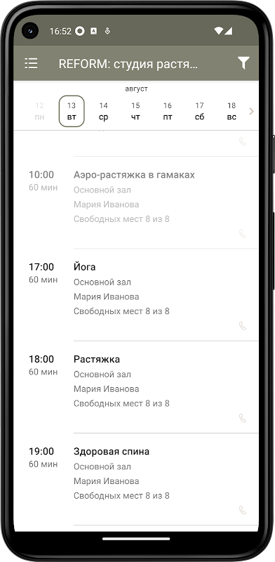 برنامه استودیو تناسب اندام سالم REFORM. یوگا، حرکات کششی، پیلاتس و غیره