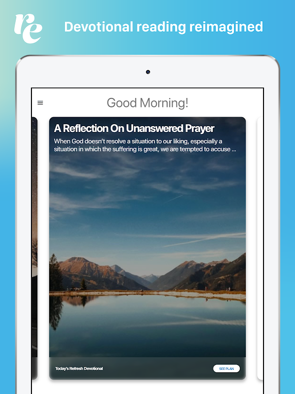 هر روز با Refresh ، برنامه کاربردی جدید و پر کاربرد روزانه کتاب مقدس از یک همکاری مشترک Tecarta / Tyndale شروع به کار جدید کنید.