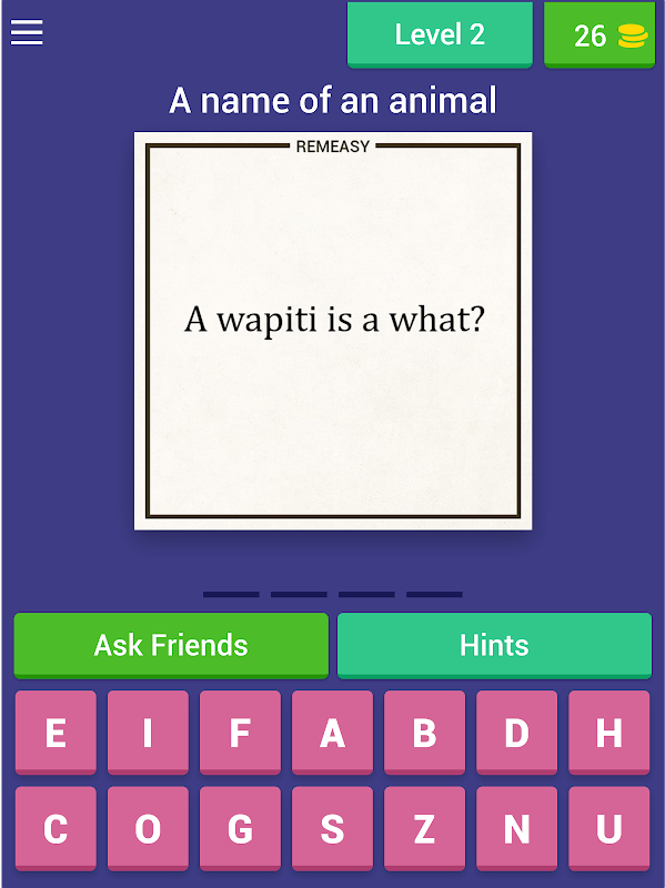 ★ Подсказки. Ваш мозг уже перегрелся от обилия новых слов в викторине? Тогда Вам прямой путь к встроенным в приложение подсказкам. Они помогут игроку обрести новые силы, вернуться на путь истинный в изучении языка и пройти эту обучающую викторину до самого конца. В REMEASY Вы сможете: