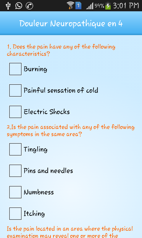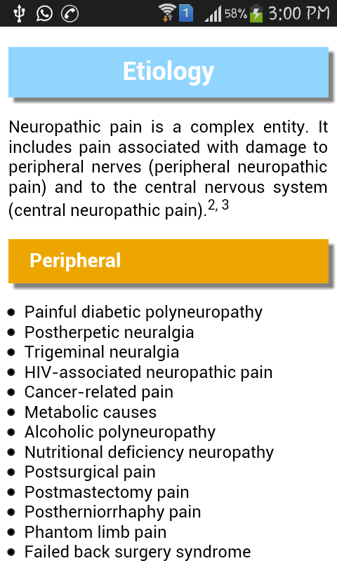 The unique Feature of the app is OSCE, which enables the physician to assess the intensity of neuropathic pain, which would guide the clinician in tailoring the therapy based on the patient response. The additional features are summary of the treatment guidelines along with key clinical trials and management of neuropathic pain. To keep abreast of the changing science peer reviewed journal updates is part of the application.
