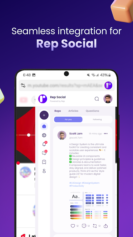 Rep Social یک افزونه مرورگر است که نحوه تعامل افراد آنلاین را با پیوست کردن بحثهای پر جنب و جوش و جامعه محور به هر صفحه وب تغییر میدهد. چه در حال تماشای یک ویدیوی YouTube، خواندن مقاله یا کاوش در دوره آموزشی Coursera باشید، Rep Social به شما امکان میدهد از طریق پستها، مقالهها و سوالاتی که مستقیماً با محتوایی که مشاهده میکنید، با دیگران ارتباط برقرار کنید.