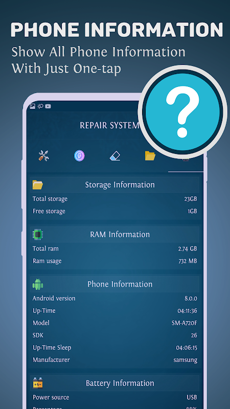 Repair system For Android & fix any problem with a simple tap, 5 tools in 1 app