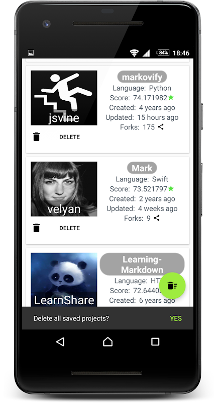 مشتری GitHub منبع باز برای آندروید با استفاده از الگوی طراحی MVVM ساخته شده است.