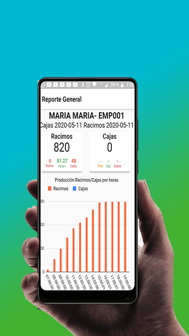 Reportes en tiempo real de datos de banano, racimos y cajas