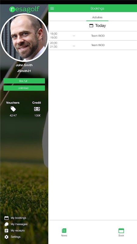 The application Resagolf will let you to book any facility of your favourite sport club (Just available in sport clubs who use our software to manage their facilities). You will be able to join any of the activities offered by the sport club. All this at your fingertips from your smartphone and in just a few taps.