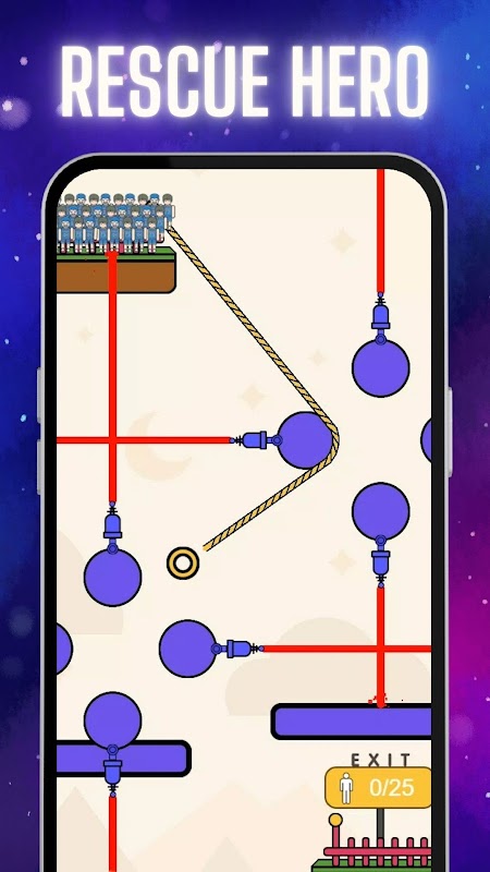 موانع و تله های زیادی در انتظار چالش شما هستند، پس استراتژیک فکر کنید و مسیر طناب را بکشید. این یک بازی پازل آموزش مغز بسیار جذاب با طراحی سطح منحصر به فرد و سطوح مختلف است تا ساعت ها شما را سرگرم کند. تسلط بر آن ممکن است آسان به نظر برسد اما دشوار است.