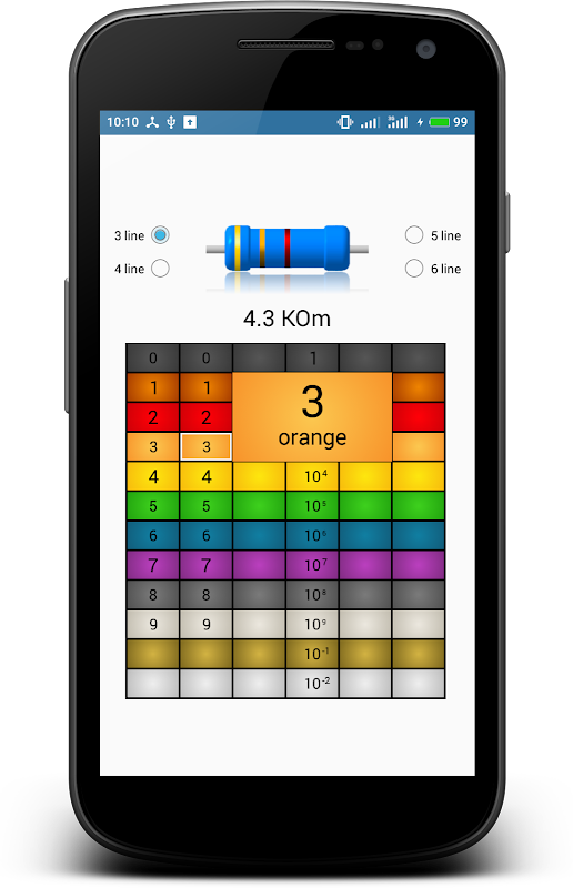 برنامه ای برای تعیین ارزش اسمی از مقاومت و از دقت و صحت رنگی مارک در مسکن. این برنامه تعیین مقاومت، به تصویر می کشد ظاهر خود را.