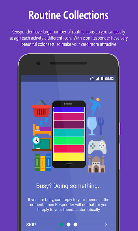 Responder doesn’t store any incoming message on your device. Responder doesn’t retrieve your messages from your phone\'s storage. We only use notifications to read your sender’s name and do reply. Responder doesn’t reply without your permission until you yourself turn on any routine card. Responder is just an auto reply tool to help you in replying your WhatsApp friends.
