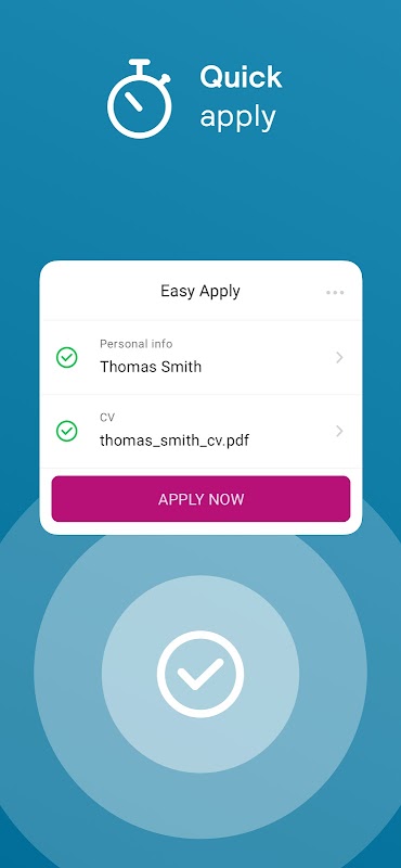 این که آیا شما در اتوبوس نشسته بود، راه رفتن را از طریق شهر و یا در راحتی اتاق نشیمن خود را بسیار خود، شما می توانید جستجو و درخواست شغل با برنامه ما فقط در چند شیپور خاموشی ساده. کامل با طیف گسترده ای از ویژگی های بومی، آن را ارائه یک تجربه کاربری جذاب است که شما را از طریق جستجوی خود را راهنمایی می کند و اعمال در یک سری از مراحل سریع و آسان.