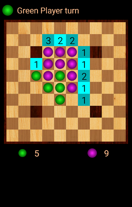 هر نوبت بازیکن قرار دادن قطعه جدید در هیئت مدیره و تمام قطعات دشمن که بین قطعه و قطعه دیگری از بازیکن که بازی رنگ خود را به رنگ بازیکن تغییر دهید.