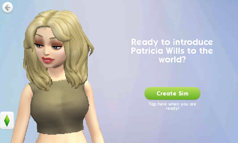 اضغطي على create sim وانتضري تحميل والعبي عادي هو يقول لك الان نحط السيمز او الشخصيه بالعالم وانتي توافقي يعني بداية اللعبه عادي ^^