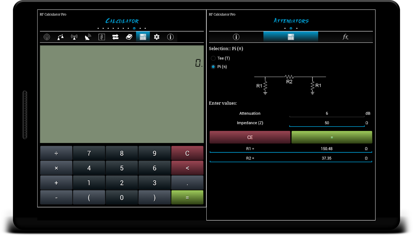 RF ماشین حساب حرفه ای یک برنامه نرم افزاری متشکل از محاسبات مختلف، تبدیل و جداول مرجع است.