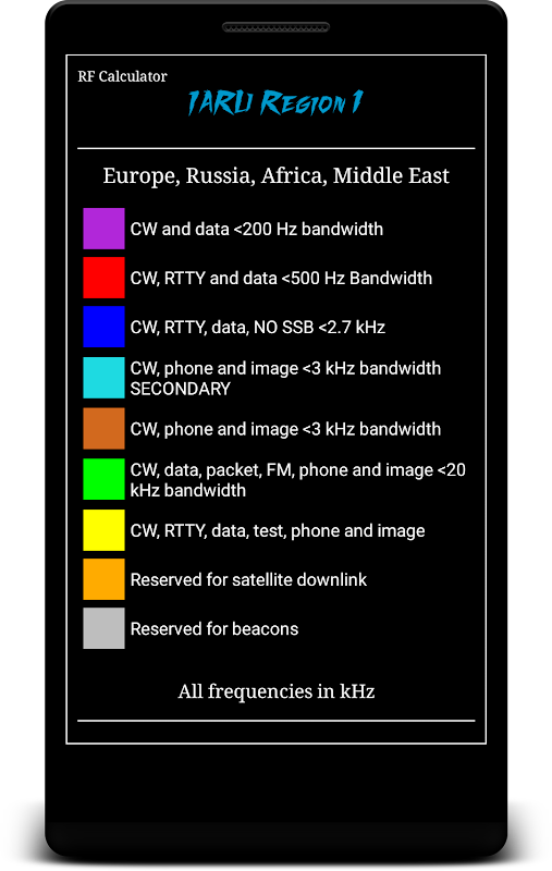RF ماشین حساب یک برنامه نرم افزاری متشکل از محاسبات مختلف، تبدیل و جداول مرجع است.
