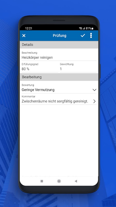 با برنامه QualityControl، کنترل های کیفی موبایل یا الکترونیکی را می توان انجام داد، به عنوان مثال. ب- آیا نظافت یا نگهداری سیستم های فنی به درستی و مستند انجام شده است یا از درختان حفاظت شده در اموال خود شرکت به درستی مراقبت می شود.