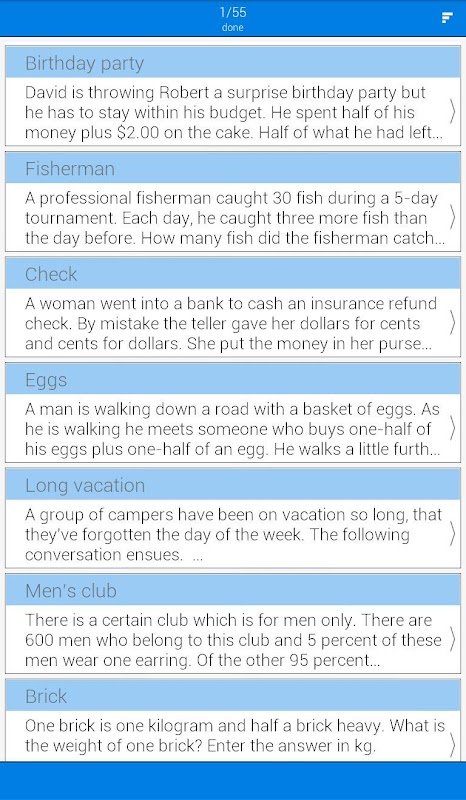 The brain teasers are separated into 5 different categories. Over 300 selected brain teasers and riddles ready to get your brain thinking.