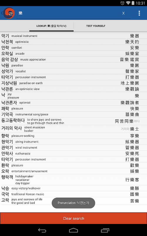 • 10،000 کلمه مرورگر واژگان که در آن شما می توانید کلماتی را که hanja همان به اشتراک گذاشتن پیدا