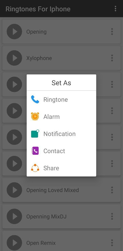 در این برنامه می توانید آهنگ های زنگ زیادی را برای سبک آیفون پیدا کنید. شما می توانید این آهنگ های زنگ را به عنوان آهنگ زنگ پیش فرض ، صدای زنگ هشدار ، صدای اعلان یا پیامک تنظیم کنید ، فقط باید آهنگ دلخواه خود را انتخاب کنید و روی تنظیم آهنگ زنگ به عنوان کلیک کنید و گزینه خود را انتخاب کنید. بنابراین ، بروید و دوستان و خانواده خود را تحت تأثیر قرار دهید و این آهنگ های زنگ را برای تلفن های آندروید بر روی دستگاه خود تهیه کنید و جالبترین مرد باشید زیرا شما بهترین برنامه آهنگ زنگ را دارید.