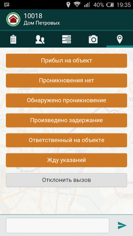 هنگام دریافت یک تماس بر روی لوح RRG اطلاعات به روز از کارت سیستم شی GeoRITM منتقل - آدرس، یک عکس از جسم، محل آن بر روی نقشه، یک لیست از حسگرها باعث و تماس با افراد مسئول. این اطلاعات در دسترس به کارکنان ناشی از گروه تنها در درمان اضطراب است.