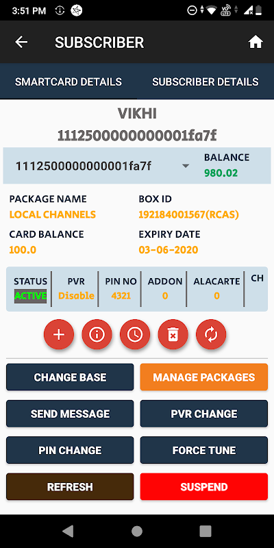 1. Navigation drawer changing in UI design. 2. Manage package date adjustment. 3. Manage package selection in both active and expiry packages. 4. Cancel subscription, multi selection option. 5. Dashboard info and design change. 6. Notification from SUBLCO recharge daily. 7. Cancel subscription report. 8. Online Payment. 9. Operator Balance Sheet. 10. BulkRecharge. 11. Recurring. 12. DynamicReport. 13. ChatApplication.