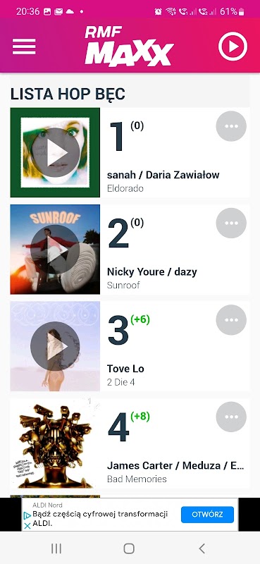 برنامه RMF MAXX به شما امکان گوش دادن به رادیو را می دهد و به شما امکان دسترسی به آخرین اخبار و بهترین مسابقات را می دهد. شما همچنین می توانید آنچه را که ما روی آنتن پخش می کنیم را بررسی کنید و به آهنگ های مورد علاقه خود در لیست HOP BĘC رأی دهید. دانلود