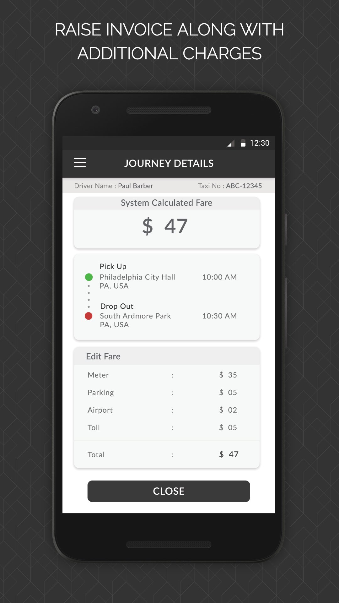 4) The mobile app will calculate the real distance captured so be assured of the bill generated