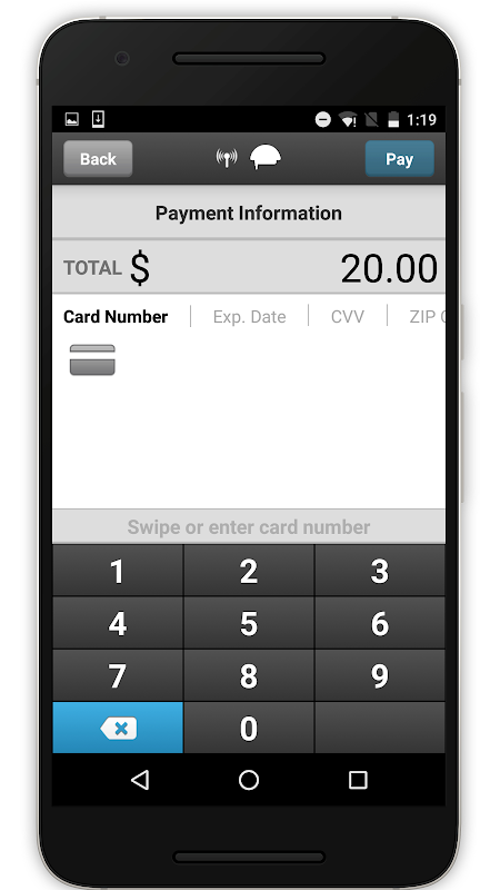 Start accepting payments on the go! ROAMswipe goes beyond enabling mobile payment acceptance, transforming your phone or tablet into a true mobile point of sale device. ROAMswipe is complete with all the tools you need to manage your business, including a product catalog, capture of customer data, and customized receipts.