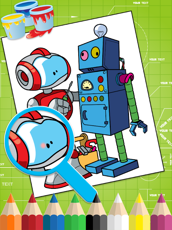 این نرم افزار شامل 60 عکس از روبات ها، هیولا و موجودات دیگر برای رنگ آمیزی. تصاویر برای بزرگسالان و کودکان بسیار جذاب است.