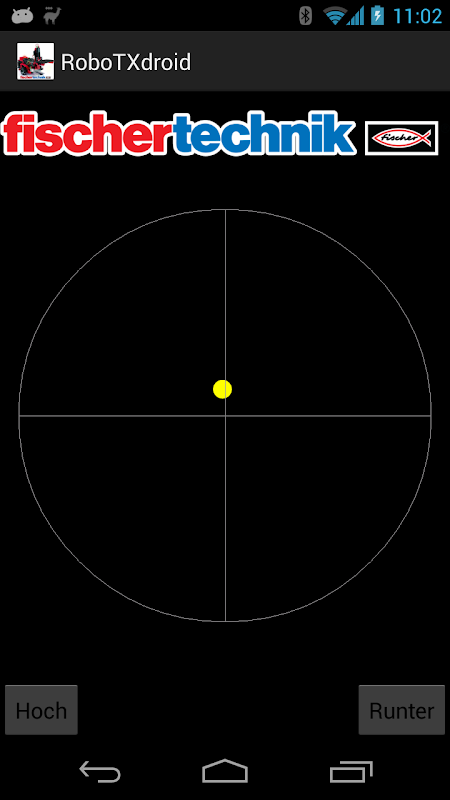 RoboTXdroid با استفاده از حرکت توانایی های سنجش از تلفن خود را. مدل Fischertechnik® ممکن است به سمت چپ / راست اگر تلفن هوشمند به چپ / راست به چرخش و یا رفتن به جلو / عقب اگر از گوشی های هوشمند را کاهش می / به سمت بالا نقل مکان کرد. کلیدهای نرم "بالا" / "پایین" فعال شدن خروجی O5 / O6. در شروع، لطفا یک نگاهی به آموزش.