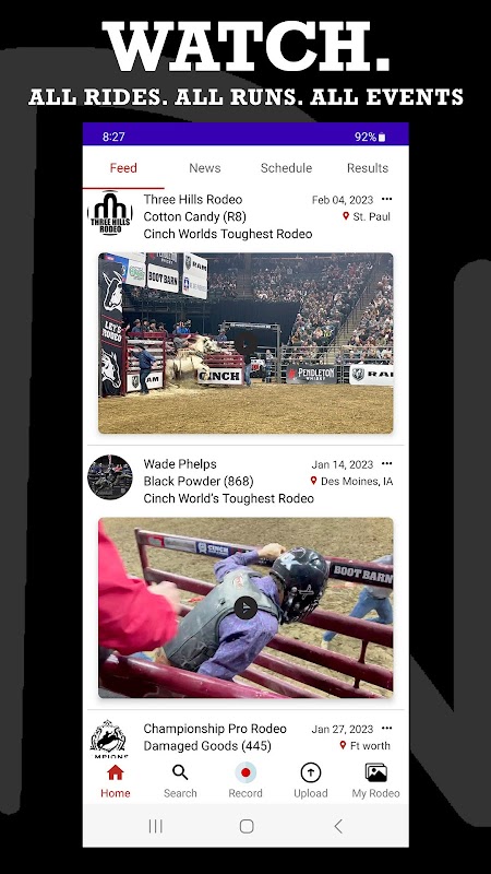 به همین سادگی… اسب، گاو نر یا مسابقهدهنده رودئو مورد علاقه خود را در هر رویدادی جستجو کنید و جدیدترین و بهترین ویدیوهای آنها را در RodeoNow ببینید. انتخاب کنید موارد دلخواه خود را دنبال کنید و فید ویدیوی خود را دقیقاً همانطور که می خواهید ببینید. شرکت کنندگان، می خواهید در مورد آخرین قرعه کشی سهام خود بدانید؟ باید بدانید که چقدر باید به برونک خود بدهید؟ ران شما در آخرین باری که سوار شد چگونه دوید؟ همه چیز را اینجا در RodeoNow پیدا کنید
