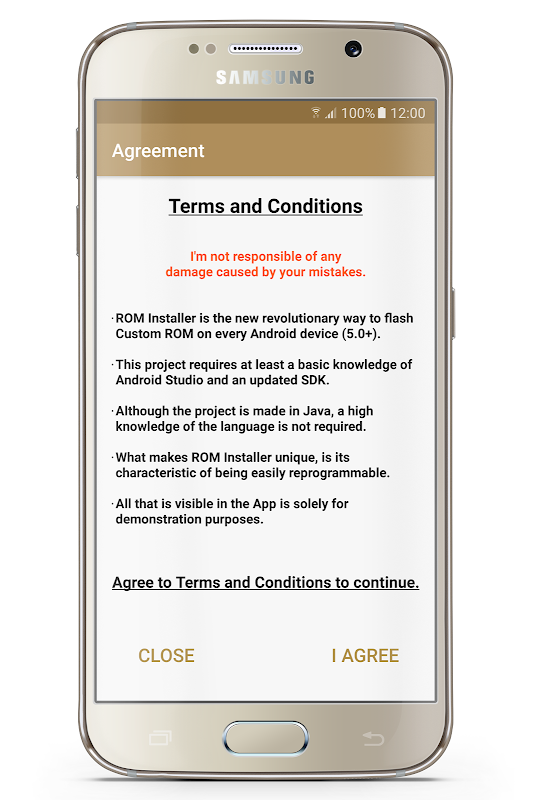 ROM Installer is a source code project. This means that you have to download the project from GitHub and to import it into your Android Studio. This project requires at least a basic knowledge of Android Studio. Although the project is made in Java, a high knowledge of the language is not required. ROM Installer is the new revolutionary way to flash Custom ROM on every Android device (Android 5.0 or higher). What makes ROM Installer unique is its characteristic of being easily reprogrammable by the developer who adopts it. The App has two user interfaces (ButtonUI and SwipeUI), offers the possibility to add a splash and a disclaimer screen, to verify the integrity of the ROM before installing, to download any type of file in many different modes, to download and install a recovery. This project is distributed under GNU General Public License. This means that you must respect the freedom of Open Source. I'm giving you this revolutionary project for free and I expect that you keep this public and Open Source. Moreover you must upload your custom version of this project on GitHub because your work could act as an example for other developers interested in this project and also because I can help you in case you need my help. The most important benefit for users is that they can choose what features to install on their devices. Instead, the most important benefit for developers is that they don't have to edit their updater-script in order to remove mods or features due to users requests. The developer has just to configure the App with a preference for each feature he wants to include in his ROM. Then is on the own of each user to choose whether to install that feature or not.