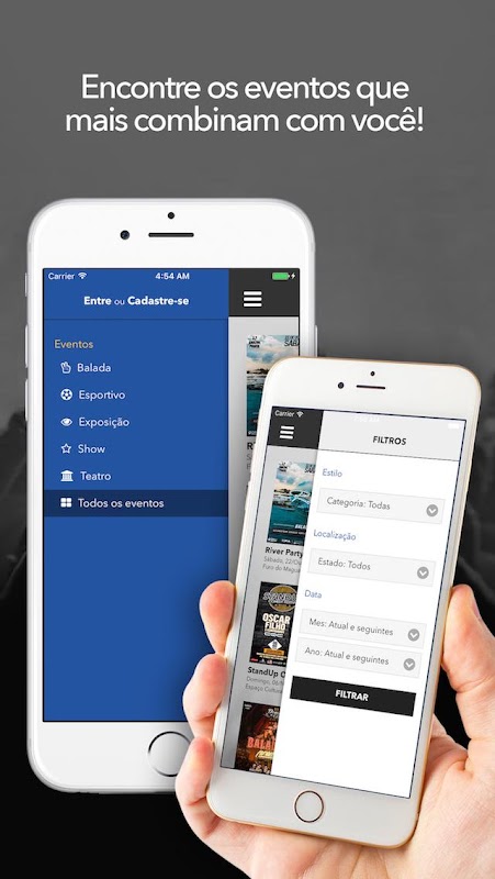 Com ele você pode ter acesso aos melhores eventos na palma da sua mão, de forma rápida, fácil e segura.