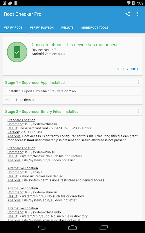 این نرم افزار خواهد شد دستگاه برای دسترسی ریشه را تست کنید. روش آزمون بسیار ساده، سریع، و قابل اعتماد برای دسترسی ریشه را بررسی کنید. باینری سو باینری شایع ترین استفاده در دستگاه های آندروید به دسترسی ریشه است. این نرم افزار را بررسی و تایید محل باینری سو و مجوز بر روی دستگاه. این اطلاعات به طور کلی در تشخیص مسائل با دسترسی ریشه مفید است.
