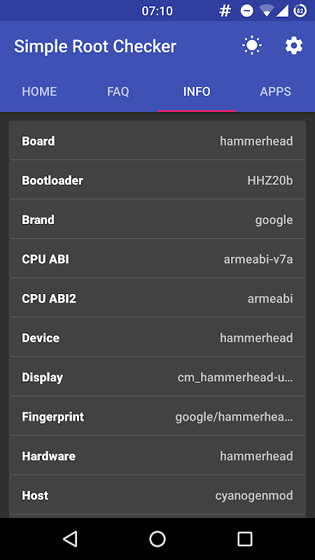 Root Checker is an application designed by following the Google guidelines about Material Design. It checks for the proper implementation of the rooting process and the installation of UNIX BusyBox package through a simple algorithm that was effective on over 150 000 different devices. Within the application, there are also a number of answers to frequently asked questions about modding on the Android platform.