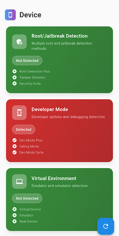 این برنامه از کتابخانههای استاندارد صنعتی و بررسیهای امنیتی پیشرفته برای تعیین اینکه آیا دستگاهی در معرض حملات مبتنی بر اصلاح است یا آسیبپذیر است، استفاده میکند. با پشتیبانی چند پلتفرمی برای اندروید و iOS، ابزاری قدرتمند برای توسعه دهندگان، آزمایش کنندگان و کاربران آگاه به امنیت است.
