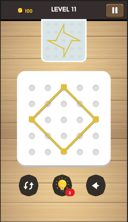 Rope String Art is a fun and brain puzzle game. Connect ,Drag and Divide rope between points to make the exact shape from the design you will be given in the top of screen .In every level you need to design different shapes to solve string art puzzle game.Rope String Art will challenge your logic skills and test your ability.