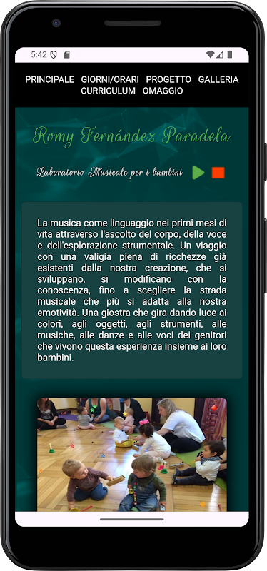 این برنامه برای تبلیغ کار آزمایشگاه موسیقی رومی فرناندز پارادلا (موسیقی برای کودکان)، در طول فعالیت خود در جنوا، ایتالیا، بین سالهای 2013 و 2022 خدمت میکند.