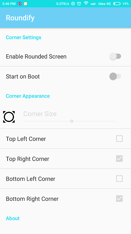 این برنامه ارائه می دهد بسیاری از تنظیمات که به شما اجازه تنظیم شعاع گوشه و همچنین مشخص است که گوشه و کنار به شما را قادر به دور.
