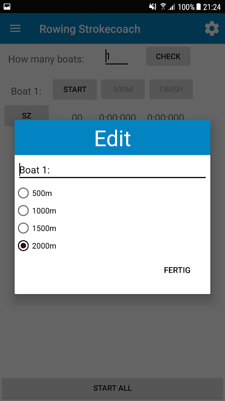 Multicoach: یک مسابقه کامل تا نه قایق را دنبال کنید و آنالیز کنید ، حتی اگر قایق ها در مسافت های مختلف مسابقه یابند (مفید است اگر شما قایق های گروه های سنی مختلف با مسافت های مختلف مسابقه دارید>> به صورت جداگانه برای هر قایق از 500 ، 1000 ، 1500 تا 2000 متر انتخاب کنید. )