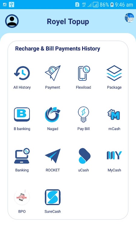 "Royel Topup" اپلیکیشنی است که شامل بسیاری از ویژگی های مالی موبایل و راه حل های شارژ خود موبایل است. از طریق این برنامه، یک کاربر می تواند تمام اپراتورهای تلفن همراه موجود در بنگلادش را به راحتی شارژ کند. این برنامه همچنین بسته های دقیقه و بسته های موجود را پیشنهاد می کند که توسط همه اپراتورهای تلفن همراه در بنگلادش ارائه می شود.