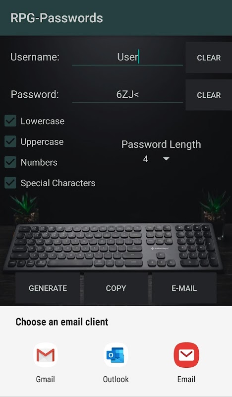 RPG-Passwords رمزهای عبور ایمنی ایجاد می کند و امکان تهیه نسخه پشتیبان با سایر اطلاعات را فراهم می کند.