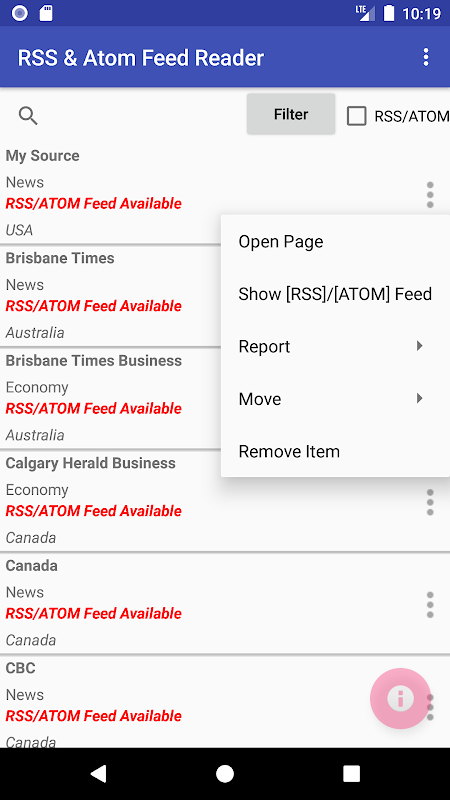 اطلاعات RSS and ATOM Feed Reader APK